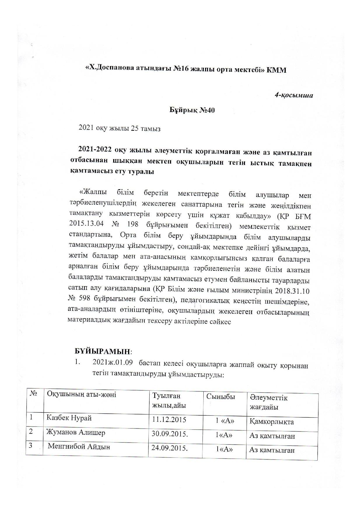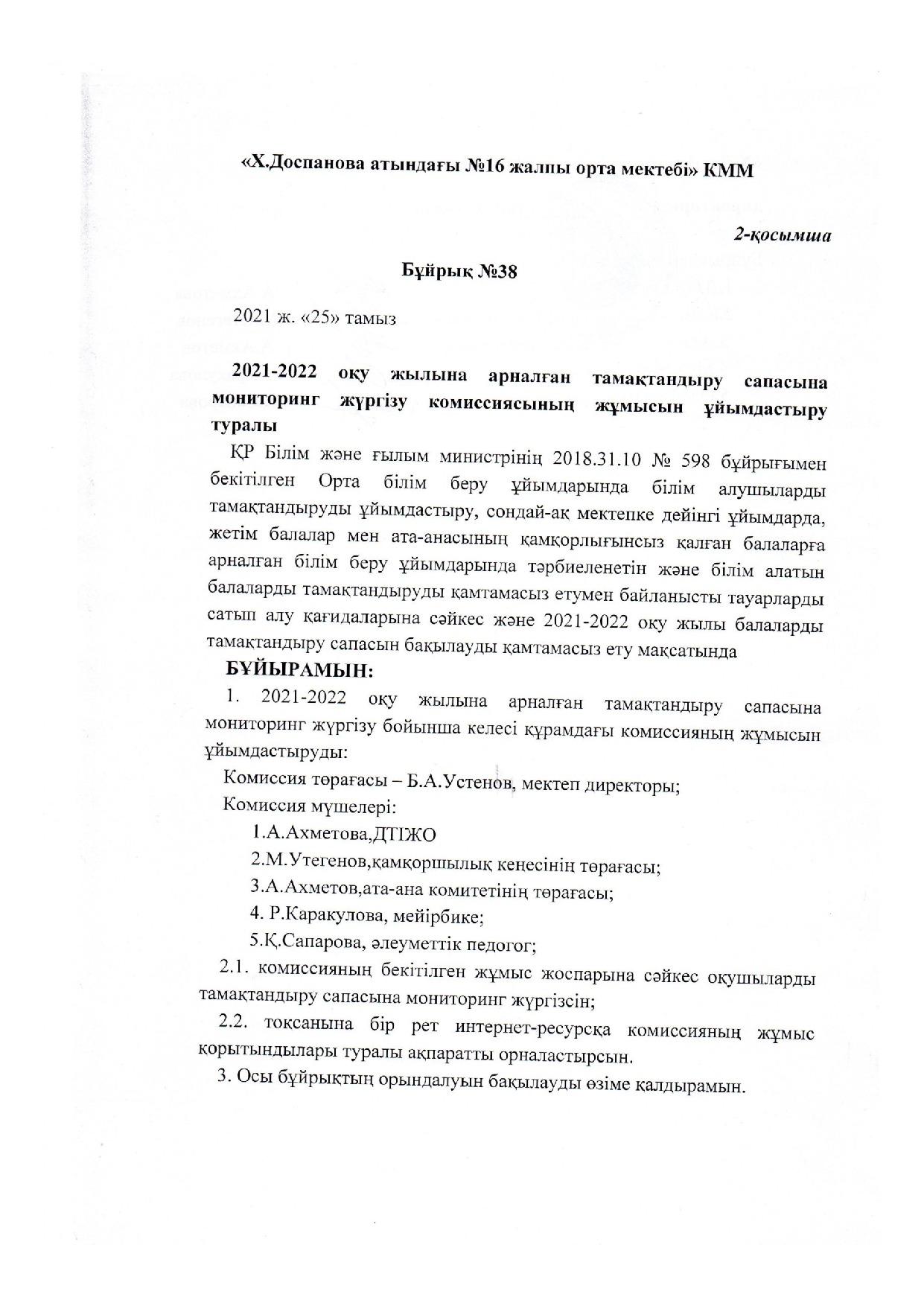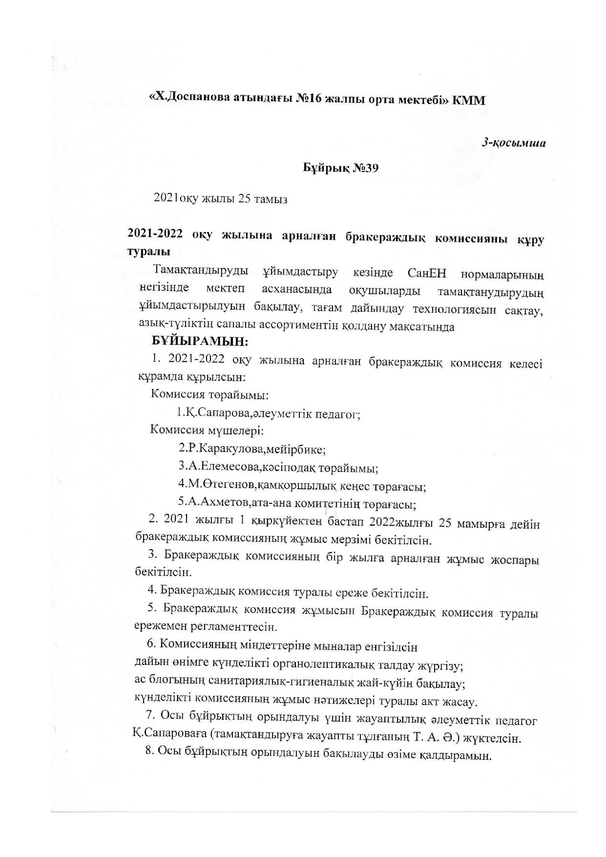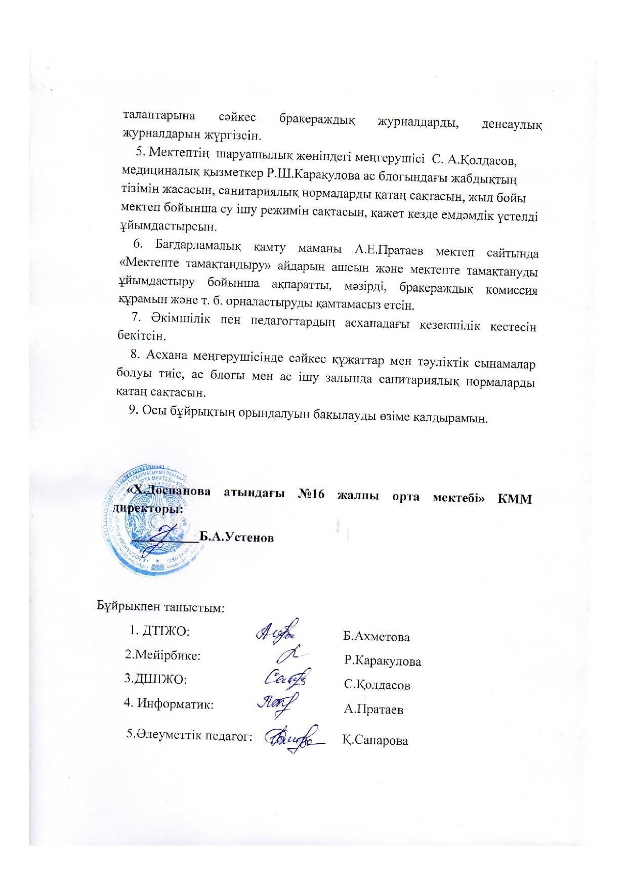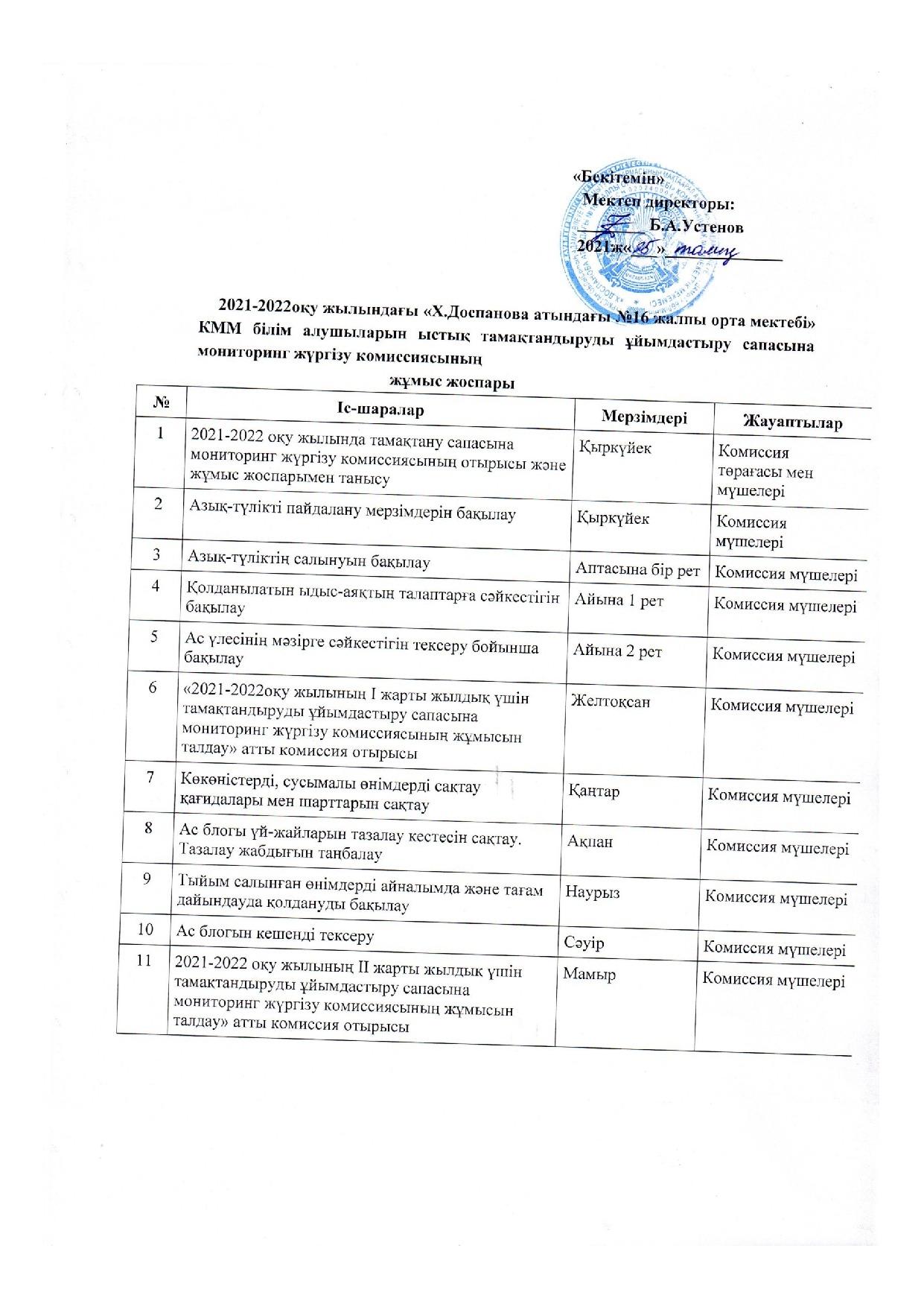 Тамақтандырудың сапалық мониторингі » №116 ЖОМ